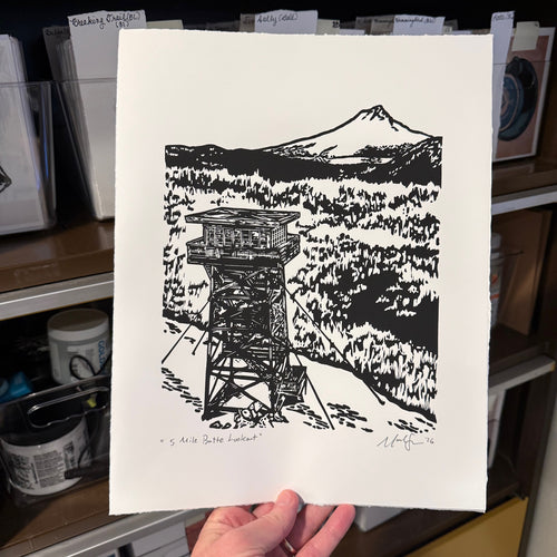 Mark lives in Central Oregon where there's plenty of outdoor activity to enjoy all throughout the year. You will likely find him on the trail or in the studio creating one of a kind linocuts inspired by the beauty of the outdoors!